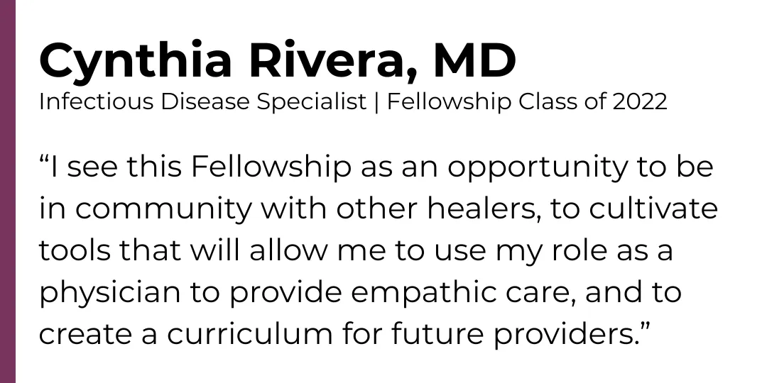 This fellowship is an integrated, transformative, year-long educational journey addressing the underlying root causes of clinician distress in both their professional and personal life—loss of meaning, isolation, emotional exhaustion.